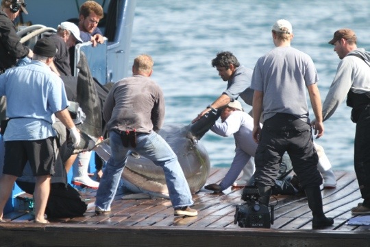 Shark Men filming for Nat Geo (shark tagging) – next to dive site