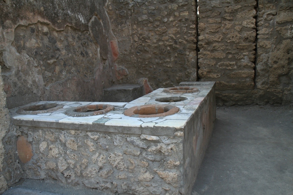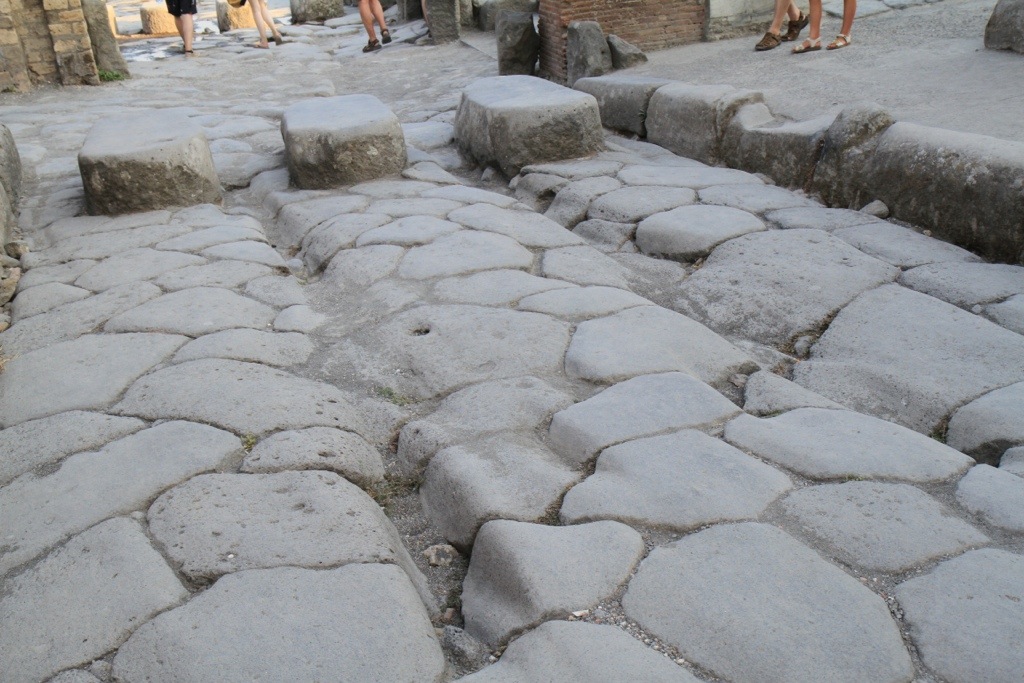 A typical street – notice the ruts in the stone from the chariot wheels and the stepping stones for people to cross the street when it rained (the streets had no underground drainage so they served as drainage channels during rain as well)