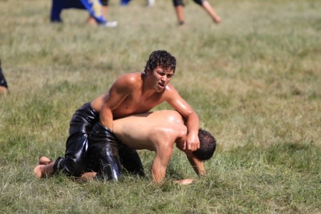 Where men don leather pants, cover themselves in copious amounts of olive oil and wrestle until the death (or until one guy crushes the other guys nuts and the other guy rolls over and starts crying – see below)…