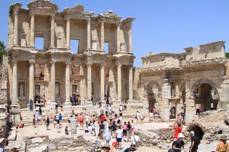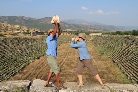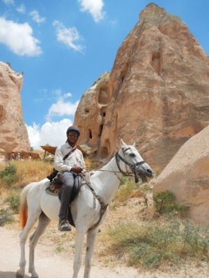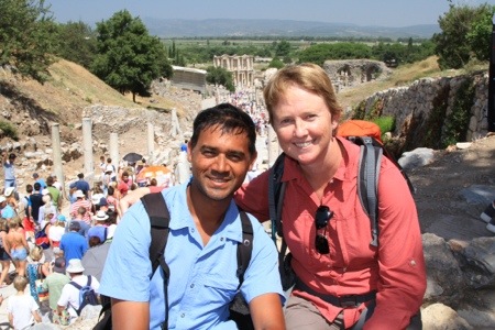 The shoe shine guy “accidentally” drops his brush while walking along the bridge. A kind man picks it up and chases after the shoe shine guy to return it. The shoe shine guy is so grateful he offers the guy a free shoe shine. Of course, the guy accepts. The shoe shine guy shines the guys shoes, all the while chatting to the guy, asking him questions about himself etc etc. The guy feels bad about getting the shoe shine for free and gives the shoe shine guy a few Turkish Lira – bingo! The shoe shine guy wins! Haha..it’s a classic scam (and well documented in the Lonely Planet guidebook and online travel forums). We saw it happen three times in ten minutes – so funny we laughed our arses off!